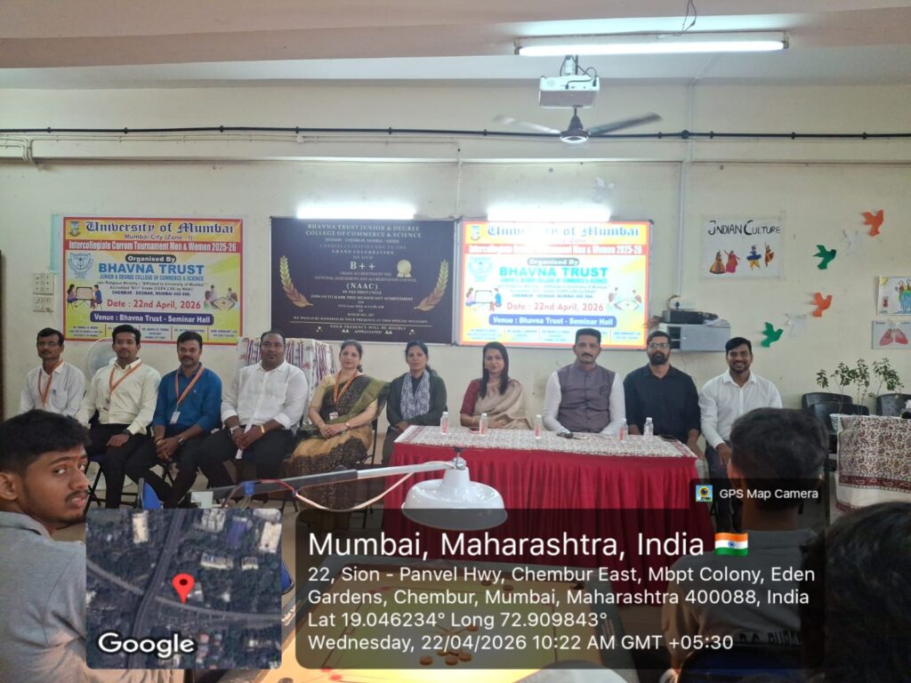 (Mumbai City Zone – I) Intercollegiate Carrom Championship for Men & Women on April 22, 2026. The event was inaugurated at 9:00 AM in the College Seminar Hall by the Chief Guest, Dr. Manoj N. Reddy, Director of Sports & Physical Education, University of Mumbai. The ceremony was held in the presence of Principal Dr. Aruna J. Singham, Secretary Dr. Manoj R. Verma, and Director of Physical Education & Sports Dr. Satish Kharatmal.This championship highlighted the college’s commitment to fostering sportsmanship and competitive excellence among students.