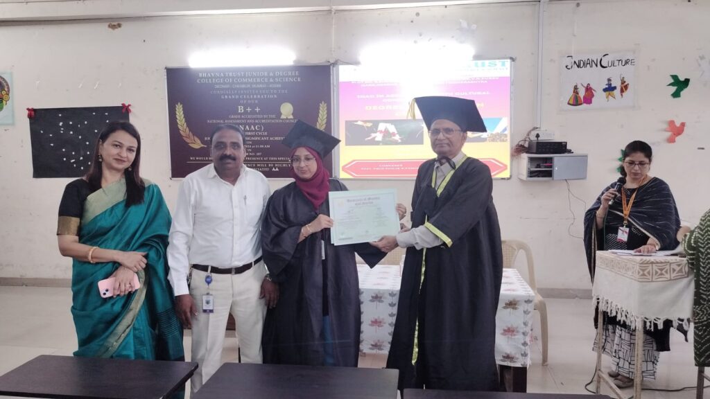 On April 8th, 2026, Bhavna Trust Junior and Degree College of Commerce and Science celebrated its Degree Distribution Ceremony in the college Seminar Hall. The event commenced with the traditional lighting of the lamp, symbolizing wisdom and new beginnings for the graduating class.
