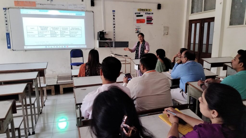 On April 7, 2026, a specialized faculty meeting was held in Classroom 203 from 10:30 AM to 11:30 AM to discuss Program Outcomes (PO) and Course Outcomes (CO) Attainment. The session focused on evaluating student learning benchmarks and refining assessment strategies to ensure academic excellence. Faculty members collaborated on data-driven approaches to measure curriculum effectiveness, reaffirming the college’s commitment to high educational standards and continuous quality improvement.