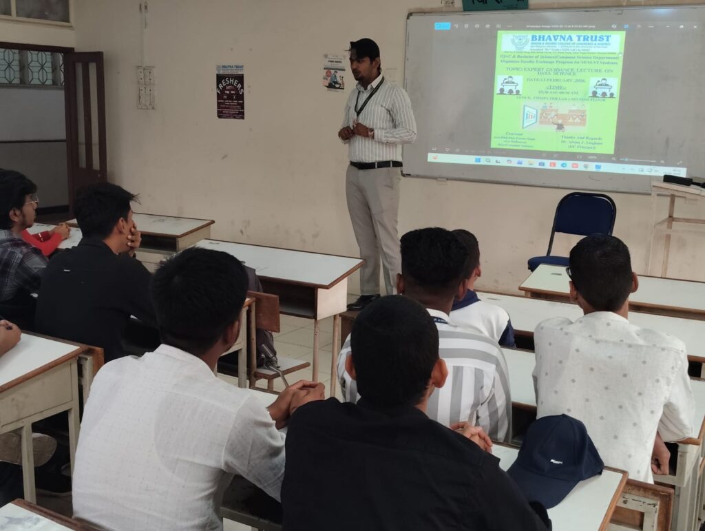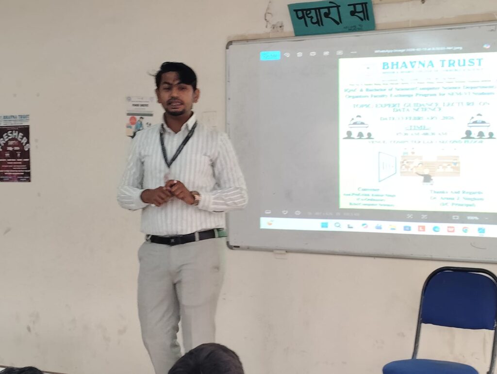 At our college, the session on Data Science was conducted from 8:30 a.m. to 9:30 a.m. by Assistant Professor Bilal Khan from Sanpada College, with 30 students participating.