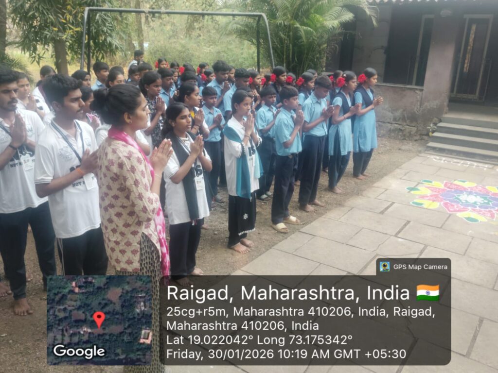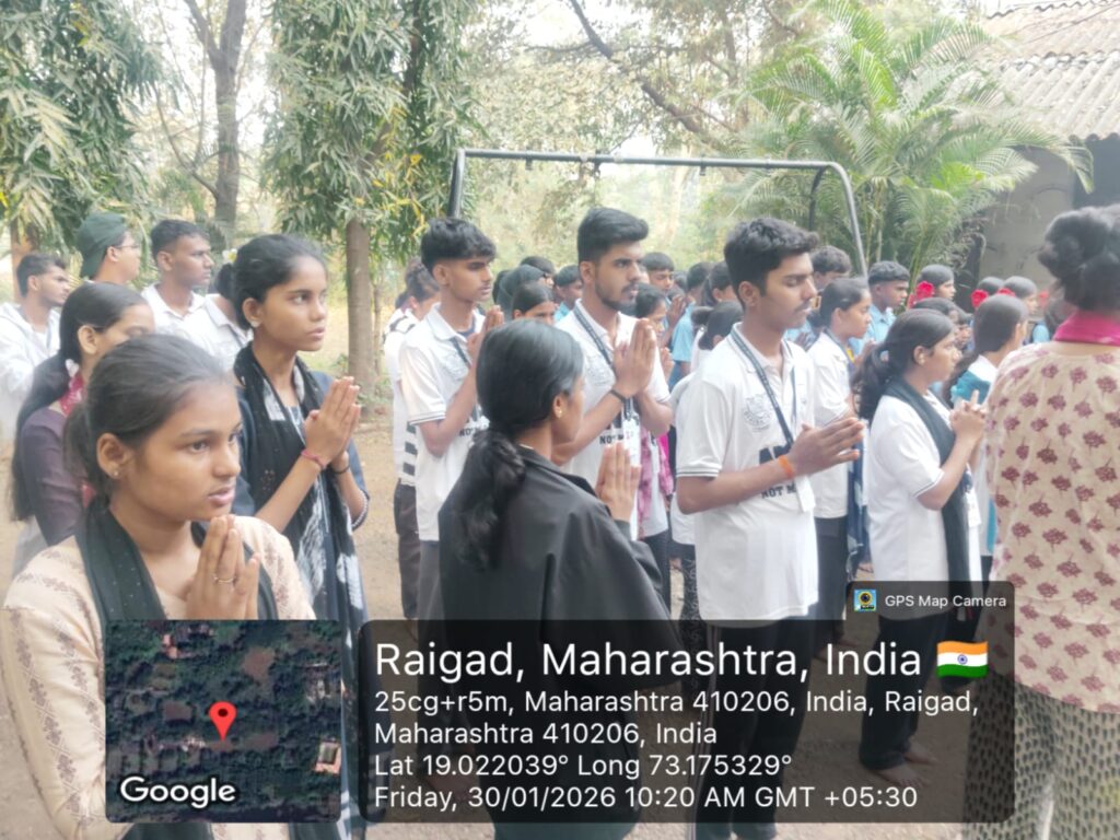 On 30th January 2026, NSS volunteers solemnly observed Mahatma Gandhi Punyatithi at Shanti Van, paying tribute to the Father of the Nation. The program included remembrance and reflection on Gandhiji’s values of truth, non-violence, and selfless service.