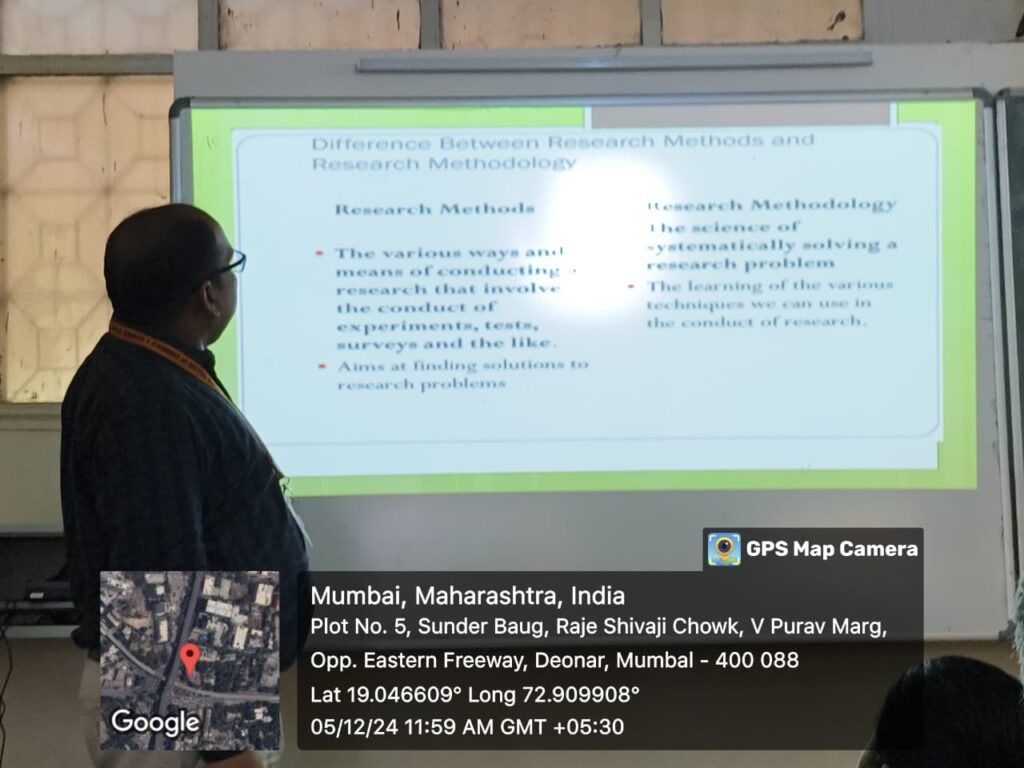 Research Cell of Bhavna Trust Junior and Degree College of Commerce and Science Organized a Seminar on 05th December 2024 at 12.10pm on the topic of “Research Methodology: A Step-by-Step Guide for Beginners, Assist. Prof. Ram Yadav was invited as a resource person; all teachers were present for the program. The resource person Assist. Prof. Ram Yadav guided teachers about “Research Methodology: A Step-by-Step Guide for Beginners, Ram Yadav Sir, suggested to all teachers, regarding the information and knowledge all about research.