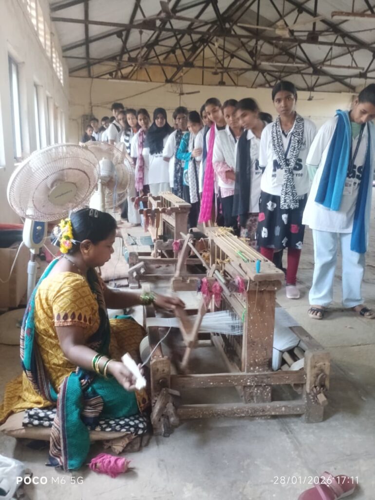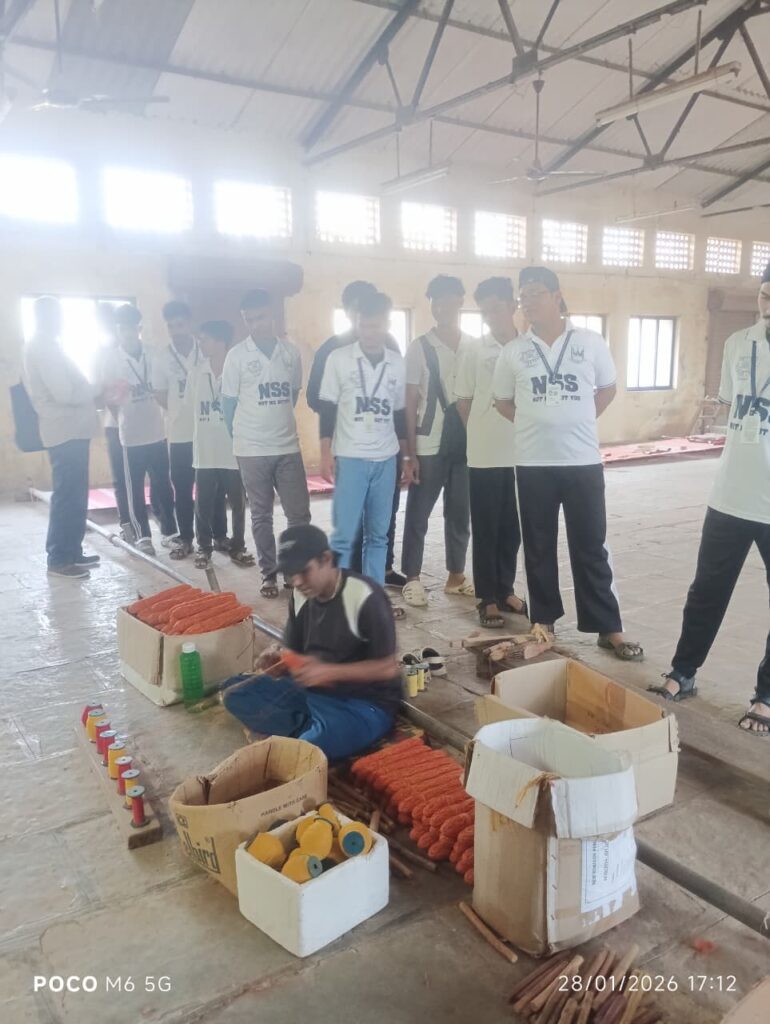 On 28th January 2026, NSS volunteers visited the Handicrafts and Carpet Factory of Kushtha Rog Nivaran Samiti, Panvel, as part of the NSS camp activities. The volunteers observed the manufacturing process of various handicraft and carpet products and learned about the skills, creativity, and self-reliance of the workers. The visit created awareness about social service initiatives and inspired students to value dignity of labour and community empowerment.