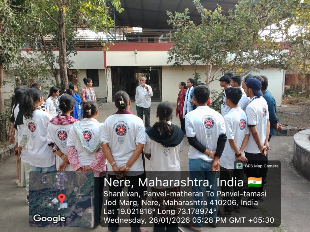 On 28th January 2026, NSS volunteers visited Rajiv Rajan Aadhar Gruha Old Age Home as part of the NSS camp activities. The volunteers interacted warmly with the elderly residents, shared conversations, and spent quality time with them, spreading joy and companionship. The visit fostered empathy, social responsibility, and respect for senior citizens, making it a meaningful and heart-touching experience for all.